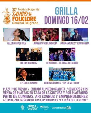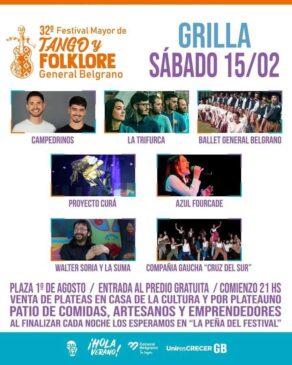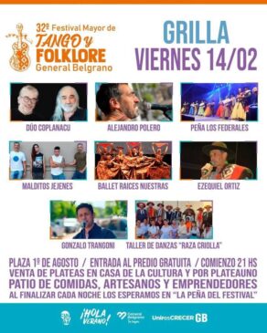 14 febrero, 2025Este viernes se dará inicio a la 32° edición del Festival Mayor de Tango y Folklore, el evento más convocante que tiene la ciudad de General Belgrano