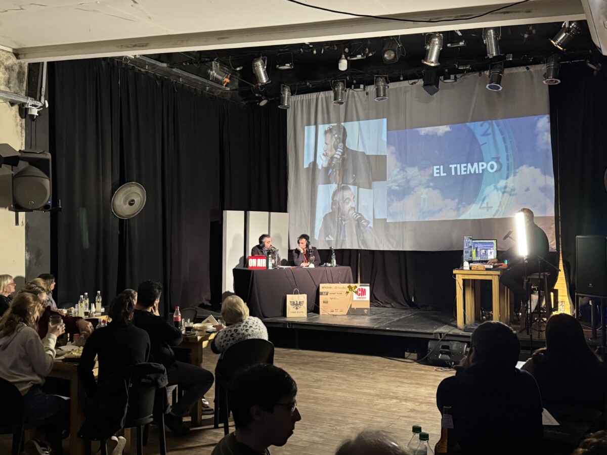 Durante el encuentro, los asistentes pudieron ver de cerca la cocina de la radio, con micrófonos, música y personajes que cobraron vida frente al público. Una de las temáticas que atravesó la noche fue “El tiempo”, eje de historias, reflexiones y consignas que conectaron con la nostalgia y el humor.